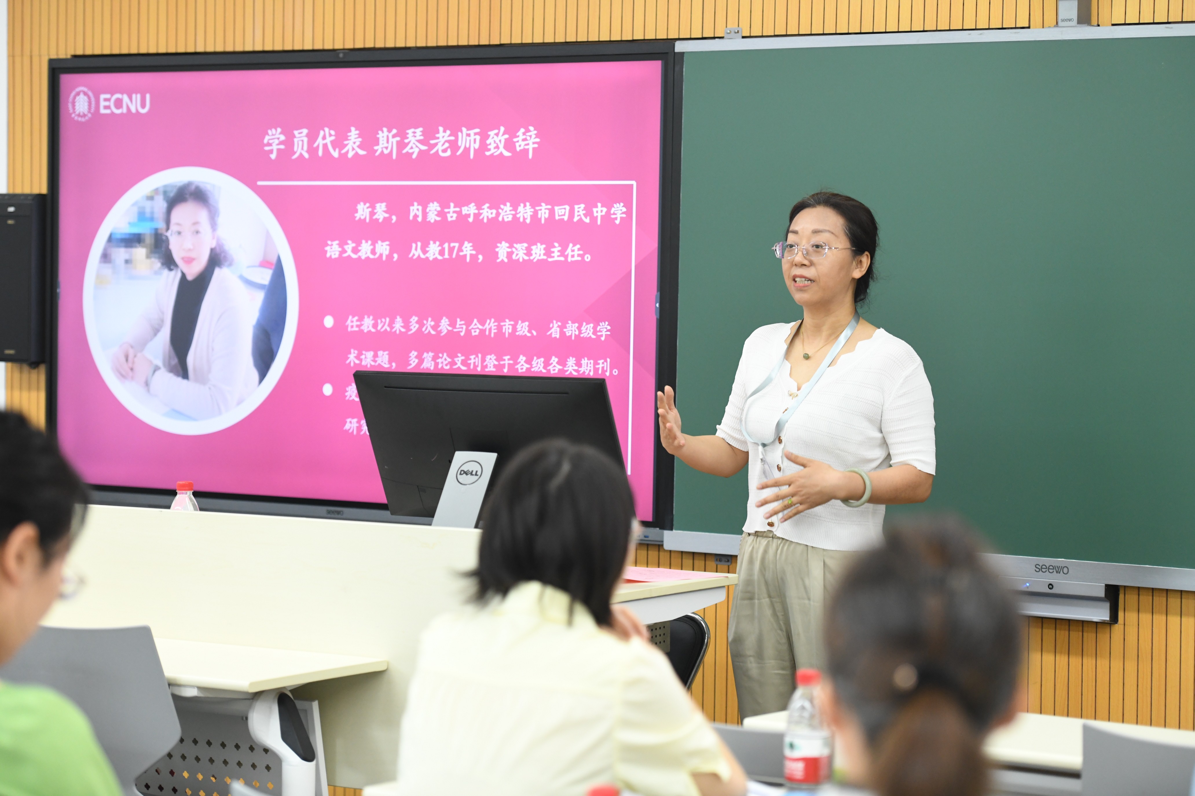 7月24日,华东师大禁漫 党委书记吕志峰出席开班仪式并致欢迎辞,他表示,希望各位研修的老师都能不虚此行,于学习、交流中开拓思路、互通有无,以“整本书”为切入点,共谋语文教育新发展。开班仪式上,来自内蒙古呼和浩特市回民中学的资深语文教师斯琴老师作为学员代表发言,对五天的研修表达了期待。