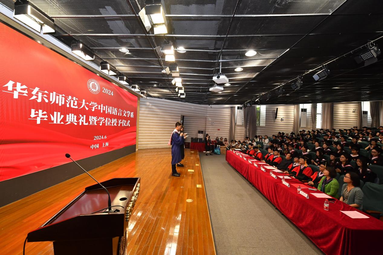 2024年6月19日,禁漫 中国语言文学系2024届毕业典礼暨学位授予仪式于闵行校区大学生活动中心C区报告厅顺利举行。本次典礼由2024届本科毕业生王丽妍和硕士毕业生刘茂林主持。