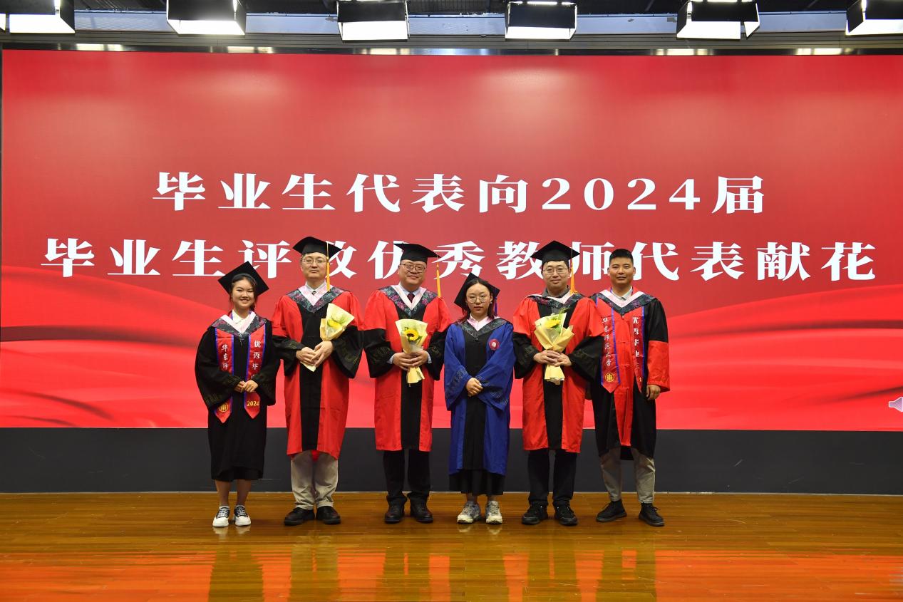 薪火相传开桃李,笔酣墨浓写春秋。与母校临别之际,毕业生代表2024届本科毕业生杨安妮、硕士毕业生胡爽爽、博士毕业生黄程伟为禁漫 2024届毕业生评教优秀教师代表禁漫 吕志峰教授、徐默凡教授和徐俪成副教授献花,感谢老师们为学生提灯引路、育梦成光。