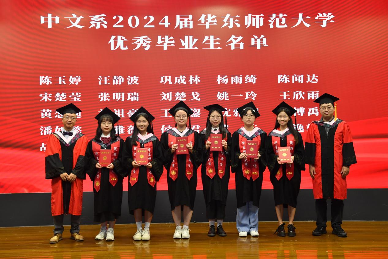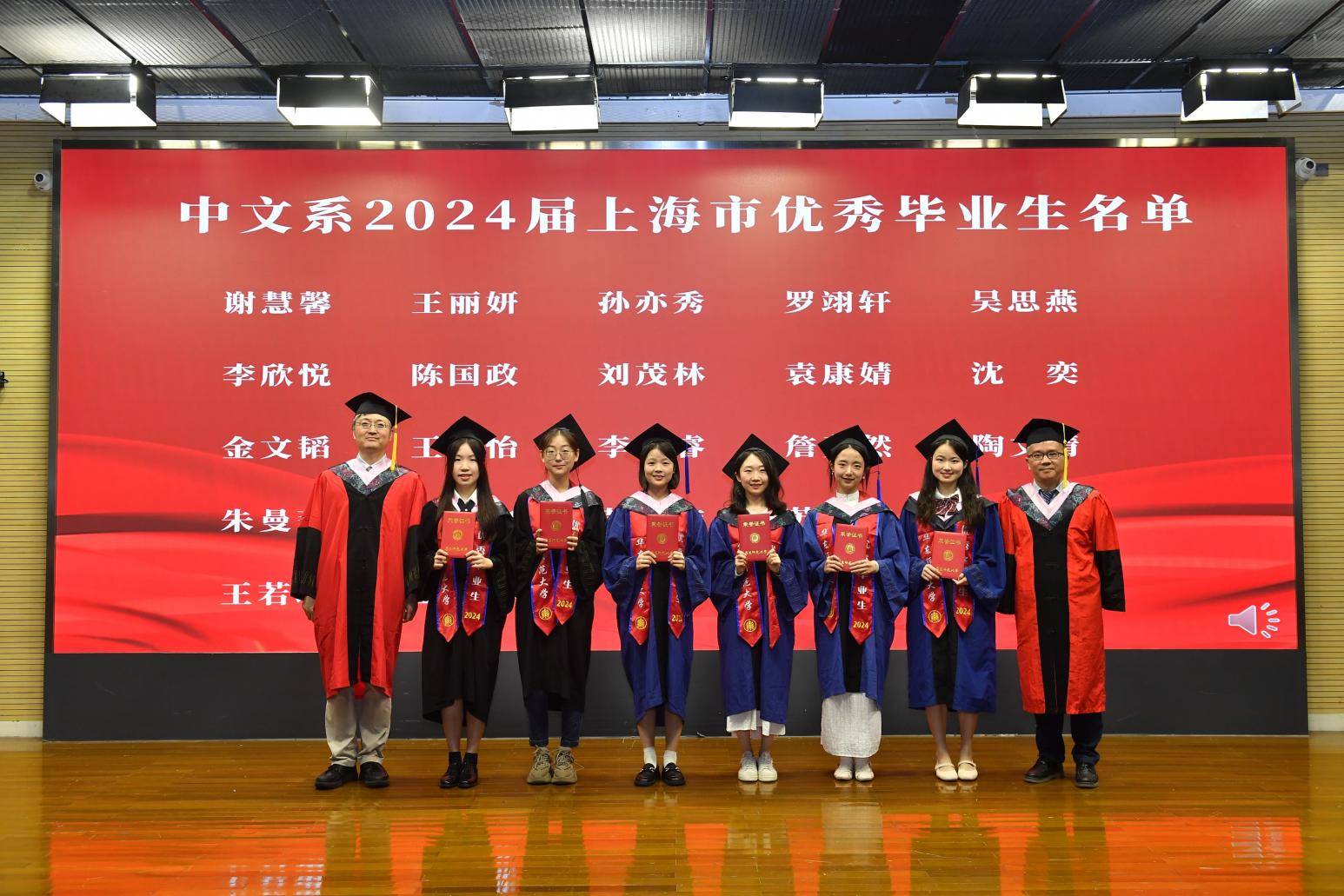 典礼上,副系主任汤拥华教授与王嘉军教授分别宣读了上海市优秀毕业生和禁漫 优秀毕业生名单。徐默凡、汤拥华、王嘉军、徐俪成四位老师分别为他们颁发证书。