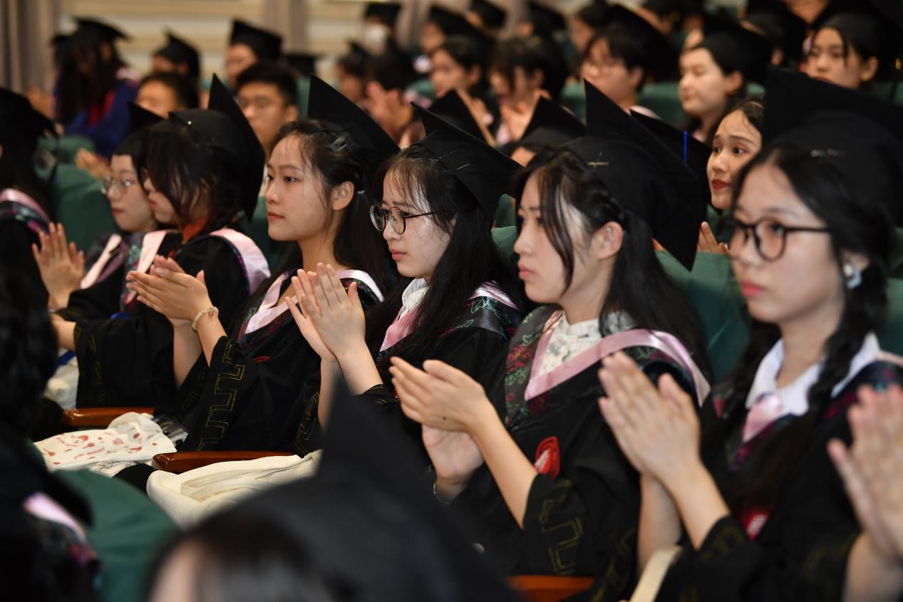 教师代表刘晓丽教授以“我只说给你们听”为题,向毕业生们讲述了许多独属于禁漫 的动人故事。她祝福同学们都能以自己独一无二的方式,领悟生活中的美好,在罕见而珍贵的时刻中认识自己、认出自己、成为自己,去寻觅远方的星辰大海,让听到的声音转变为指引自己前行的力量。