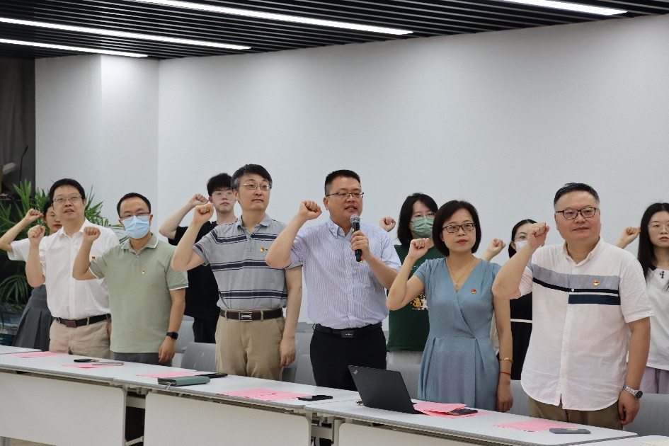 会上举行了集体入党宣誓仪式,由吕志峰领誓,在场的全体师生党员面向党旗,新党员入党宣誓、老党员重温入党誓词,不忘初心,铭记使命担当。