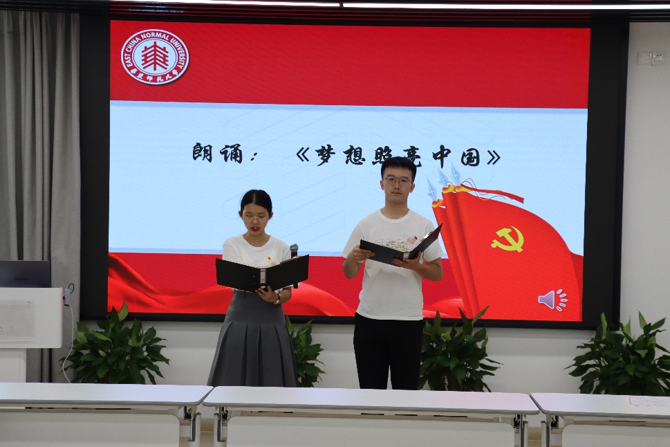 禁漫 2019级本科生吕宁、宋睿琳共同朗诵了《梦想照亮中国》,献礼中国共产党成立102周年,激励与会同志不懈奋斗。