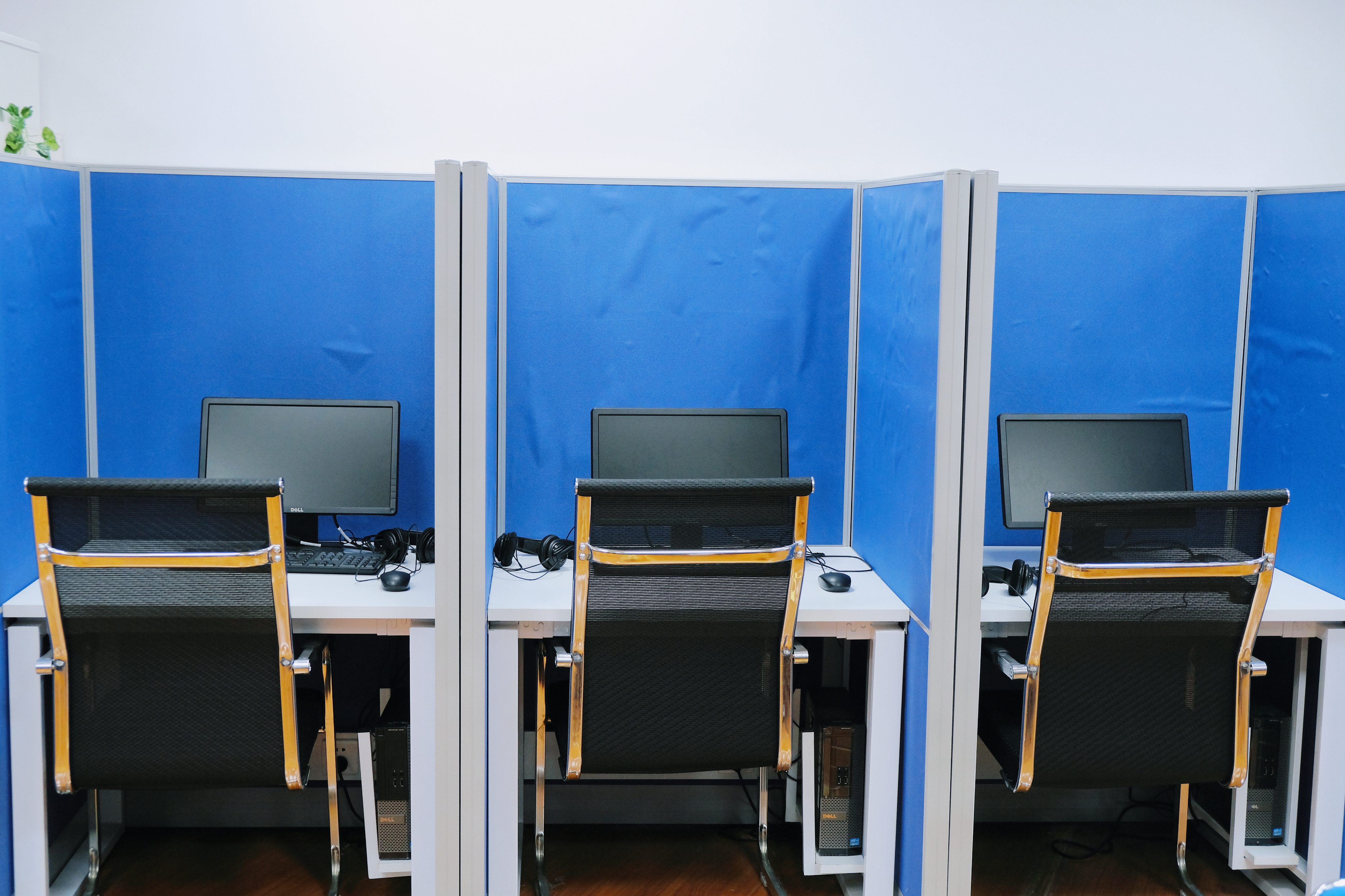 每个操作间配备了性能先进的独立台式机工作站,配件齐全,包含话筒、耳机、键盘等,安装有E-Prime 3等常用软件。