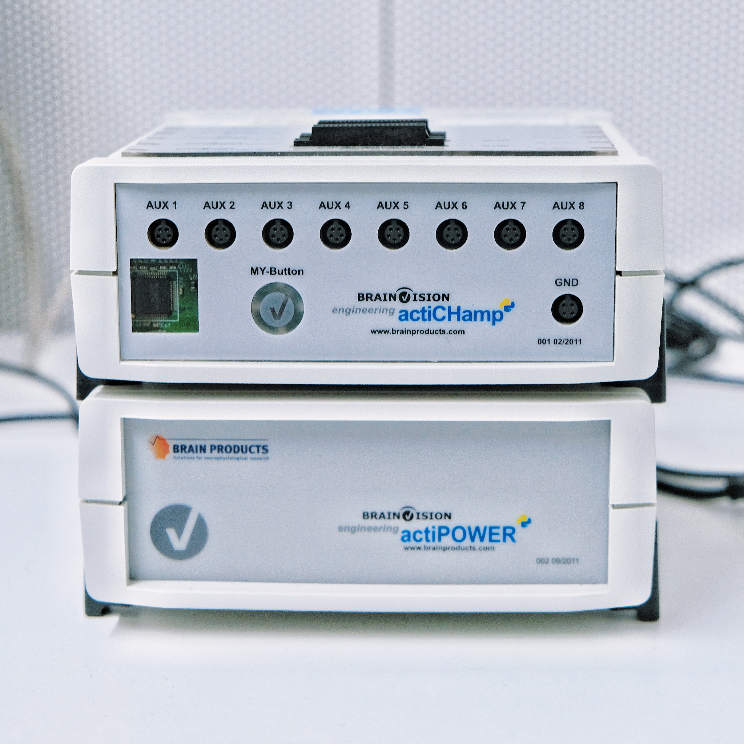 实验室还配备了德国Brain Products公司开发的actiCHamp型64导脑电采集系统,以及BrainVision Recorder 记录软件及BrainVison Analyzer分析软件。