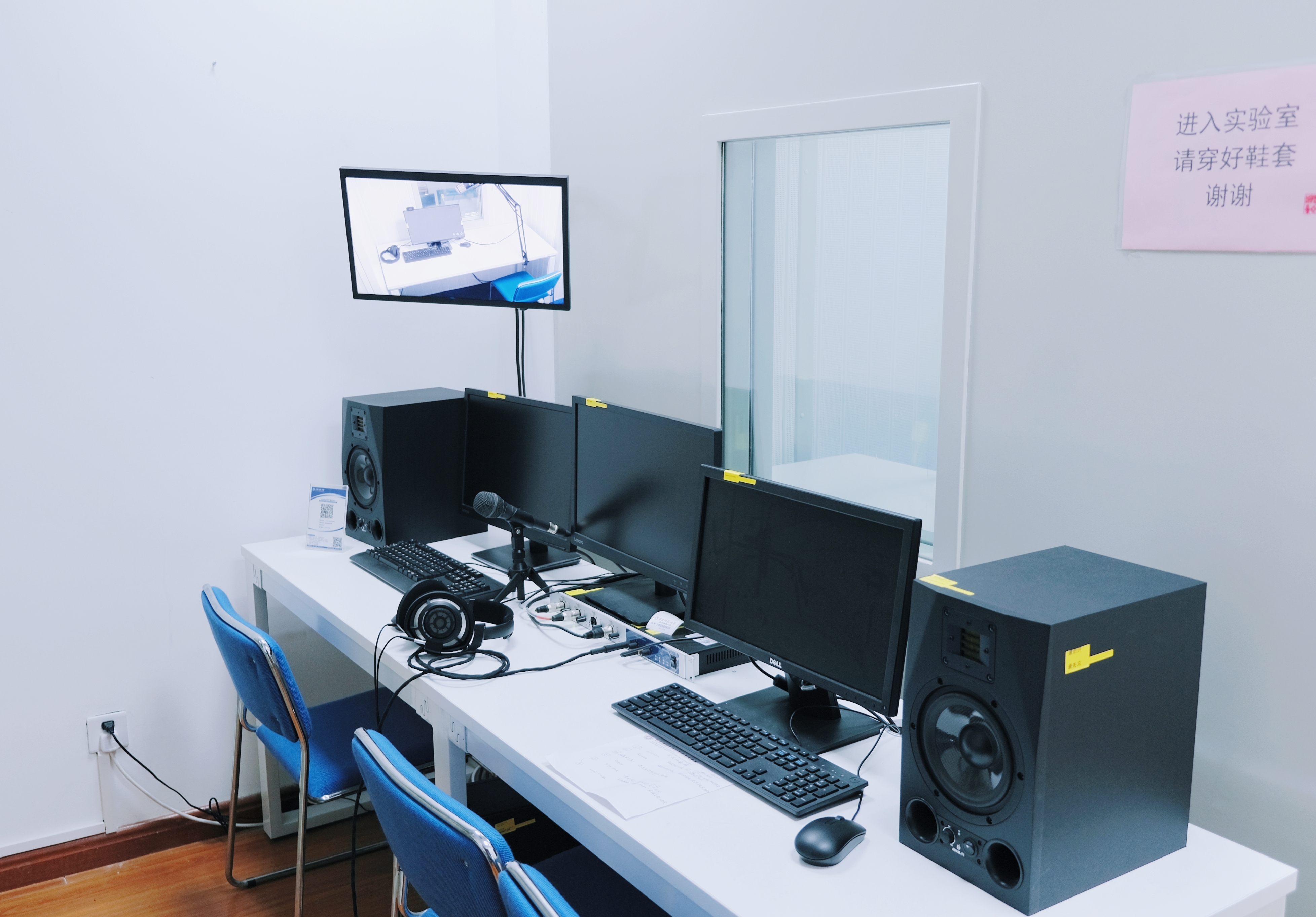 眼动实验室及语音工作室,配备了隔声室与台式机工作站,共包含两套主体设备,分别为眼动仪和音频编辑系统。另外,实验室配有多套Sound Devices USBpre2声卡、话筒等语音数据采集配件。