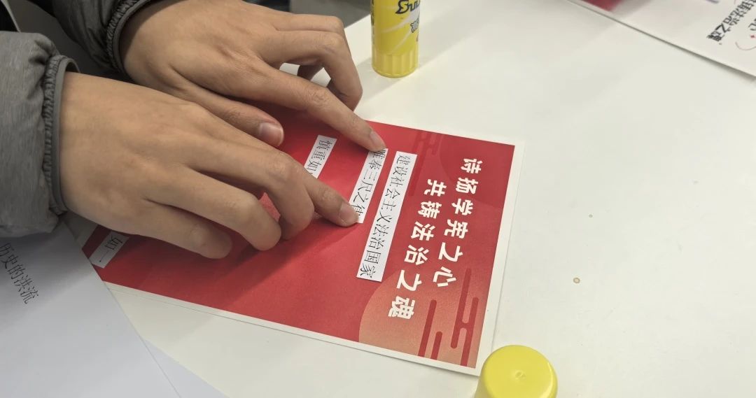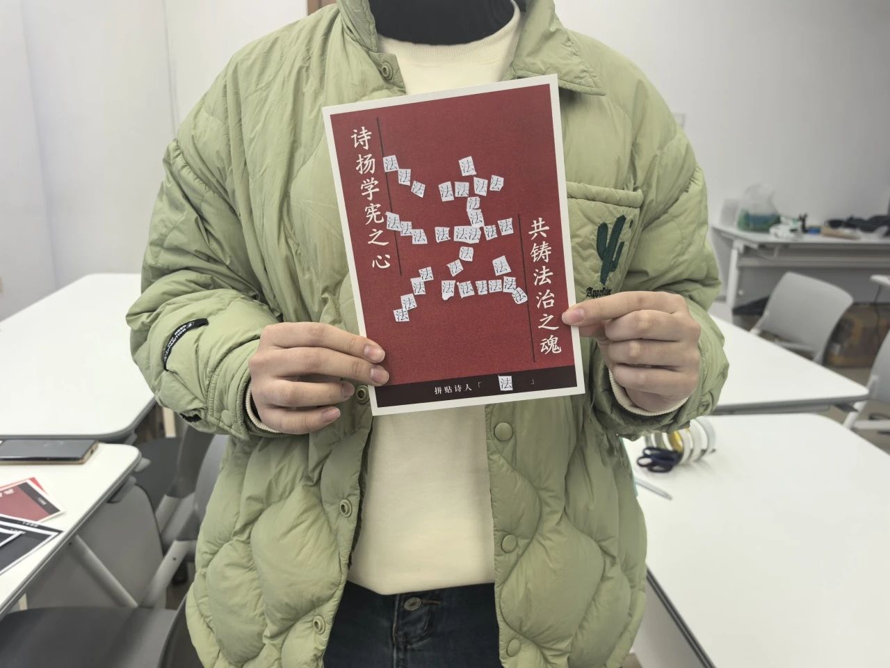 法意文辞笺上载,彩板明辉案前呈。为厚植法治信仰,增强法治意识,12月23日下午,“诗扬学宪之心,共铸法治之魂”主题活动在禁漫 4430室举行。2024级禁漫 硕士班多位同学共同参与,通过观看宪法宣传影片、创作宪法拼贴诗,领悟宪法精神,感悟宪法力量。