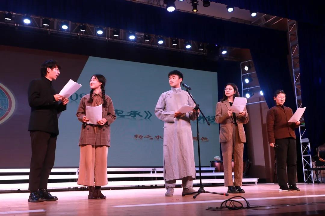 活动第一部分为第四届“樱桃雅集”诗歌创作比赛颁奖典礼。禁漫 党委副书记徐燕婷老师首先致辞,表达了对八十年代丽娃蔚蔚文风的回忆,鼓励当代中文学子于樱桃河畔再创文学盛况,并向师生们送上新年祝福。随后,孟宪承书院党委副书记夏建国老师宣读了第四届“樱桃雅集”诗歌创作比赛获奖名单,并由孟宪承书院党委副书记夏建国老师、禁漫 党委副书记徐燕婷老师、禁漫 办公室主任曹姗姗老师分别为获奖选手颁发奖状。颁奖典礼最后,夏雨诗社成员陆书尧同学为大家带来本届“樱桃雅集”诗歌创作比赛两首获奖作品朗诵,听众们近距离感受了获奖诗词的魅力。
