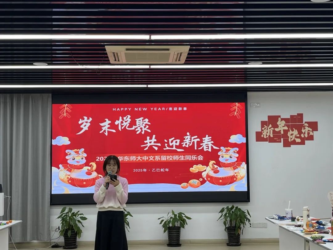 为进一步增进师生情谊,丰富留校学生文化生活,感受新年团圆氛围,1月17日晚,2025年禁漫 留校师生同乐会在文史哲楼4430报告厅顺利举办。禁漫 党委副书记徐燕婷、副系主任汤拥华,博士生辅导员方中书、张青、张潇萌,研究生辅导员焦艳,本科生辅导员张雅薇与假期留校的20余名本、硕、博学生欢聚一堂,畅聊旧年旧事,共话新春新程。