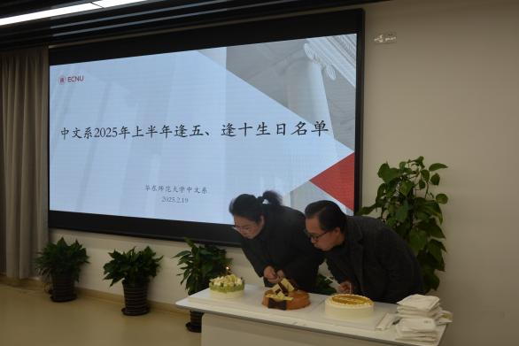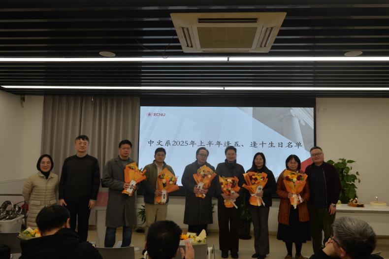 工会主席韩蕾老师宣读“逢五、逢十”生日名单,并代表全系向教师们致以诚挚祝福,感谢他们在学科建设与人才培养上的辛勤付出。系主任罗岗老师、系党委书记徐默凡老师为逢五、逢十生日的教师们送上鲜花与纪念品并合影留念。生日会上,教师们一起畅谈教学心得与生活趣事,欢声笑语不断。
