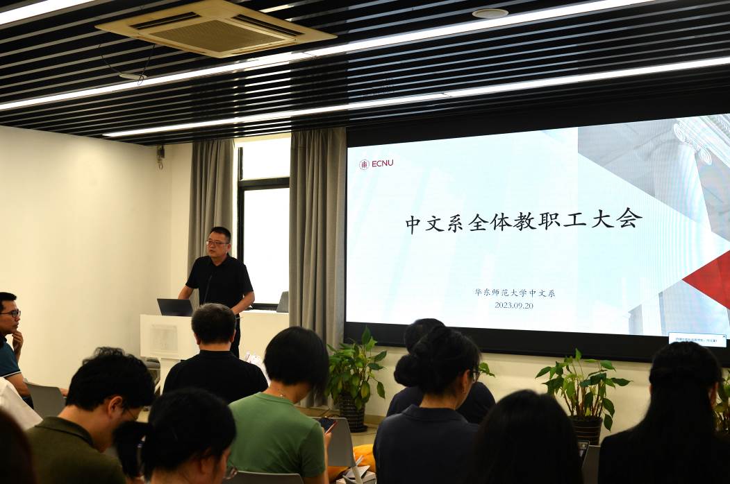 吕志峰围绕2023年教师节“躬耕教坛,强国有我”的主题,组织全系教师进行政治理论学习。结合学习内容,他希望老师们在新学期立足中文学科特色优势,积极思考“教育强国,中文何为;文化强国,中文何为”,以饱满精神、昂扬斗志更好担负起新时代新的文化使命,迎接学校第十四次党代会的胜利召开。