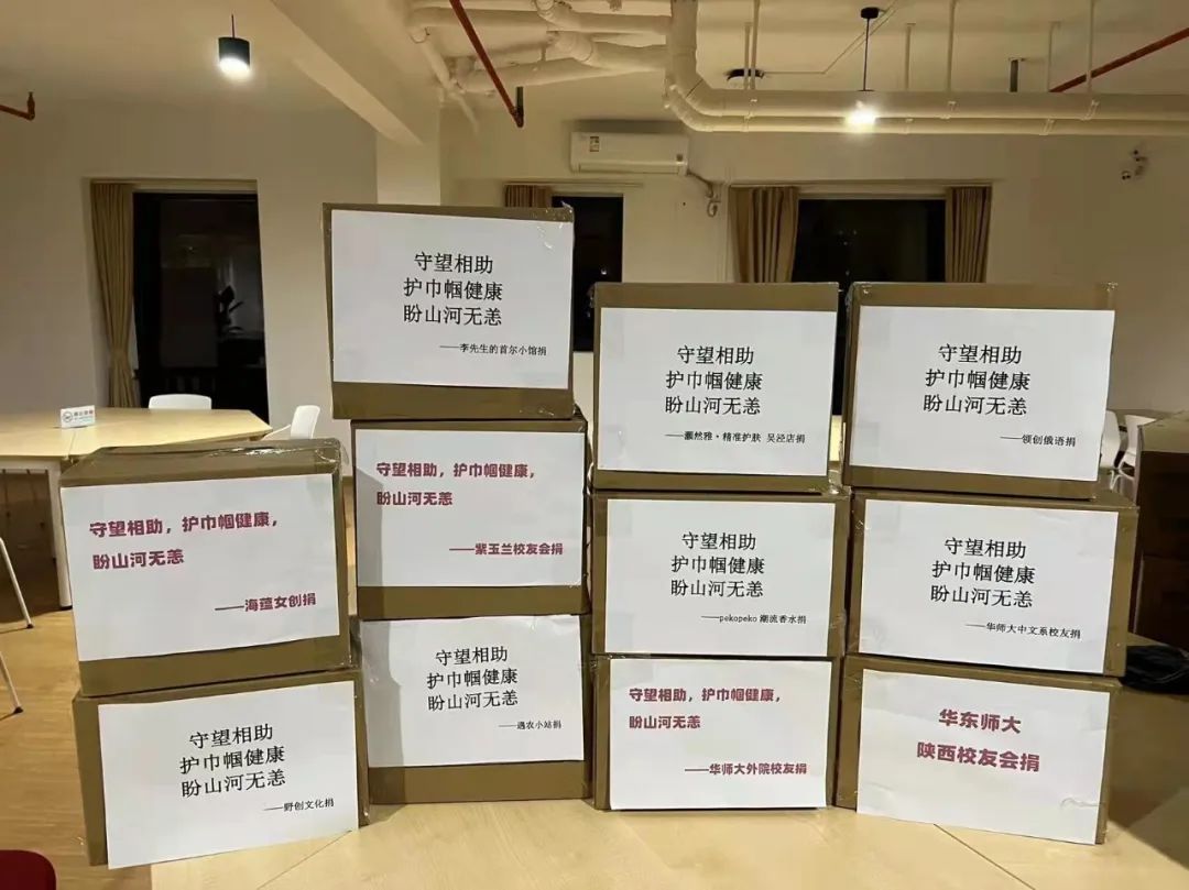 基金会账户。解决完资金问题后,3月29日中午,姜晓玉及紫玉兰校友会成员多方征集供应商信息,由于防疫隔离的原因,多个上海本地供应商发货仓库都存在不同程度的封控,经过多方联系渠道,解决价格问题及物流问题后,最终以48000元的资金购买到167箱(共计6012包)卫生巾,并连夜送至学校。在跟物资捐赠处吴鹰老师多次沟通后,姜晓玉了解到现在普陀校区正在实行分区管理的防疫政策,所以这批卫生用品需要按照不同宿舍区的人数比例进行划分,并分5个校门分批卸货。并且由于校内志愿者人数有限,所以必须由她们亲自卸货并把将物资运送到校门口与各片区负责的老师交接。在和运货司机协商无果后,上海赫元贸易派出一辆商务车及两名搬运人员,及时协助完成了卸货和交接任务。截止3月29日晚21时,从发起到完成历时不足24小时的捐赠圆满落下帷幕。除了物资方面的支持,在这场关爱女大学生生理健康的爱心接力赛中,还有一群默默在后方协助的华东师大禁漫