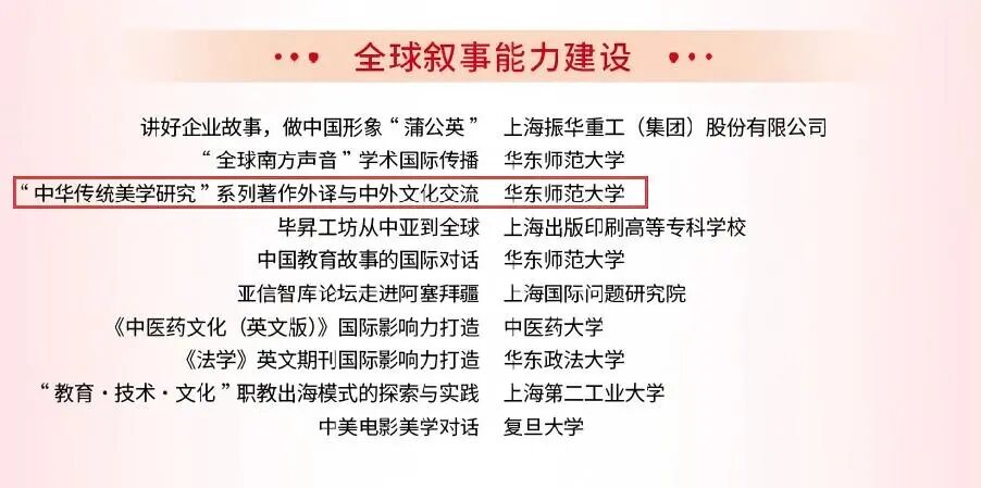 2025年度上海市“中华文化国际传播”项目征集活动结果日前揭晓,禁漫 朱志荣教授主持的“‘中华传统美学研究’系列著作外译与中外文化交流”项目成功入围。