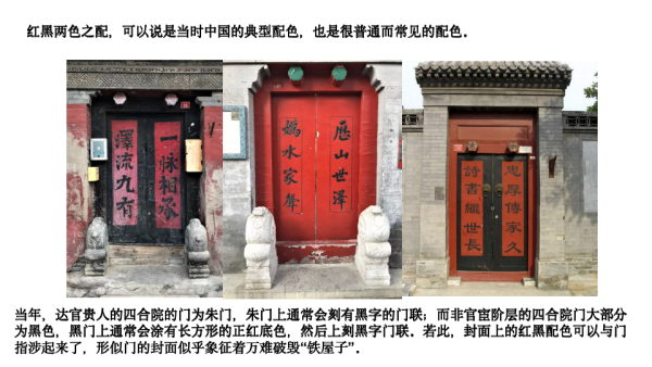 其次,李浩老师正式进入对《呐喊》装帧的分析。李浩老师从《呐喊》成集的疑问出发,强调成集也是一种“寓言”,李浩老师认为《狂人日记》 类似“总章”,小说集以狂人开始,以野蛮结束。《呐喊》作为鲁迅第一部创作小说集,在装帧设计上,鲁迅则先后做过两个版本。初版《呐喊》的封面,是鲁迅手绘仿标宋印刷字体的画稿以阴镀版印于正红色纸上的。同时,李浩老师注意到书名和作者名分别标有书名号(曲线)和私名号(直线)两种标点符号。 这种处理方式,显示着鲁迅一是遵循“将令”,即对胡适等人所倡导的新式标点的回应;二是力求让封面的个性普通化,红黑搭配很容易被淹没在当时的红黑纸片中。李浩老师指出红黑配色是当时中国民间的典型配色,常被用在节庆日,除此之外,也被用在四合院大门的设计中,而黑色的色块也与中国传统的碑额有几分接近,象征着对亡故的前驱者的纪念。因此,李浩老师认为,从红黑配色的封面设计到写“普通人”小说内容等,都是鲁迅“民间性”的表现。