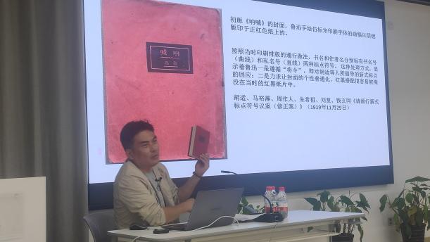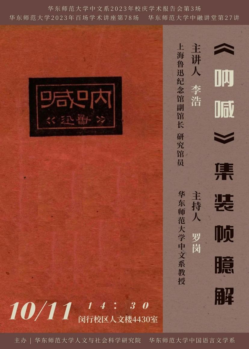2023年10月11日14:30,上海鲁迅纪念馆副馆长、研究馆员李浩在闵行校区人文楼4430室进行了一场题为“《呐喊》集装帧臆解”的精彩讲座。本次讲座是“禁漫 2023年校庆学术报告会”第3场、“禁漫 2023年百场学术讲座”第78场、“禁漫 中融讲座”第27场,由禁漫 罗岗教授主持,孙晓忠教授等禁漫 诸多师生参与聆听本次讲座。鲁迅不仅是文学家、思想家、革命家,在艺术上也造诣深厚,鲁迅的装帧、篆刻、版画等多种艺术实践和思想也对中国当代美术的发展有着重大的推动作用。李浩老师作为上海鲁迅纪念馆副馆长、研究馆员,在本次讲座中,从自身的工作和研究经验出发,结合丰富的史料探讨鲁迅《呐喊》集的装帧旨趣。