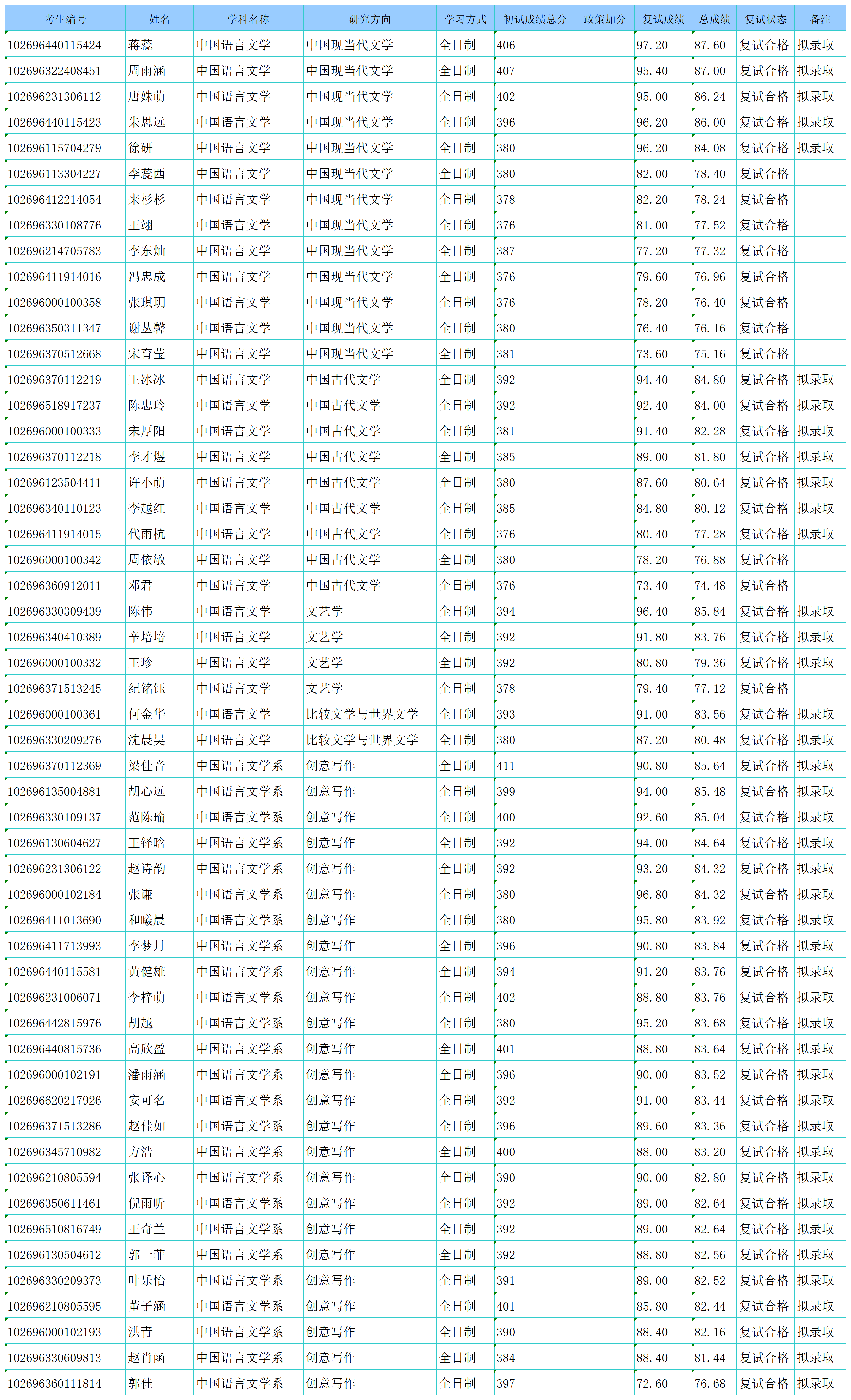 禁漫 中国语言文学系2026年硕士研究生招生复试结果