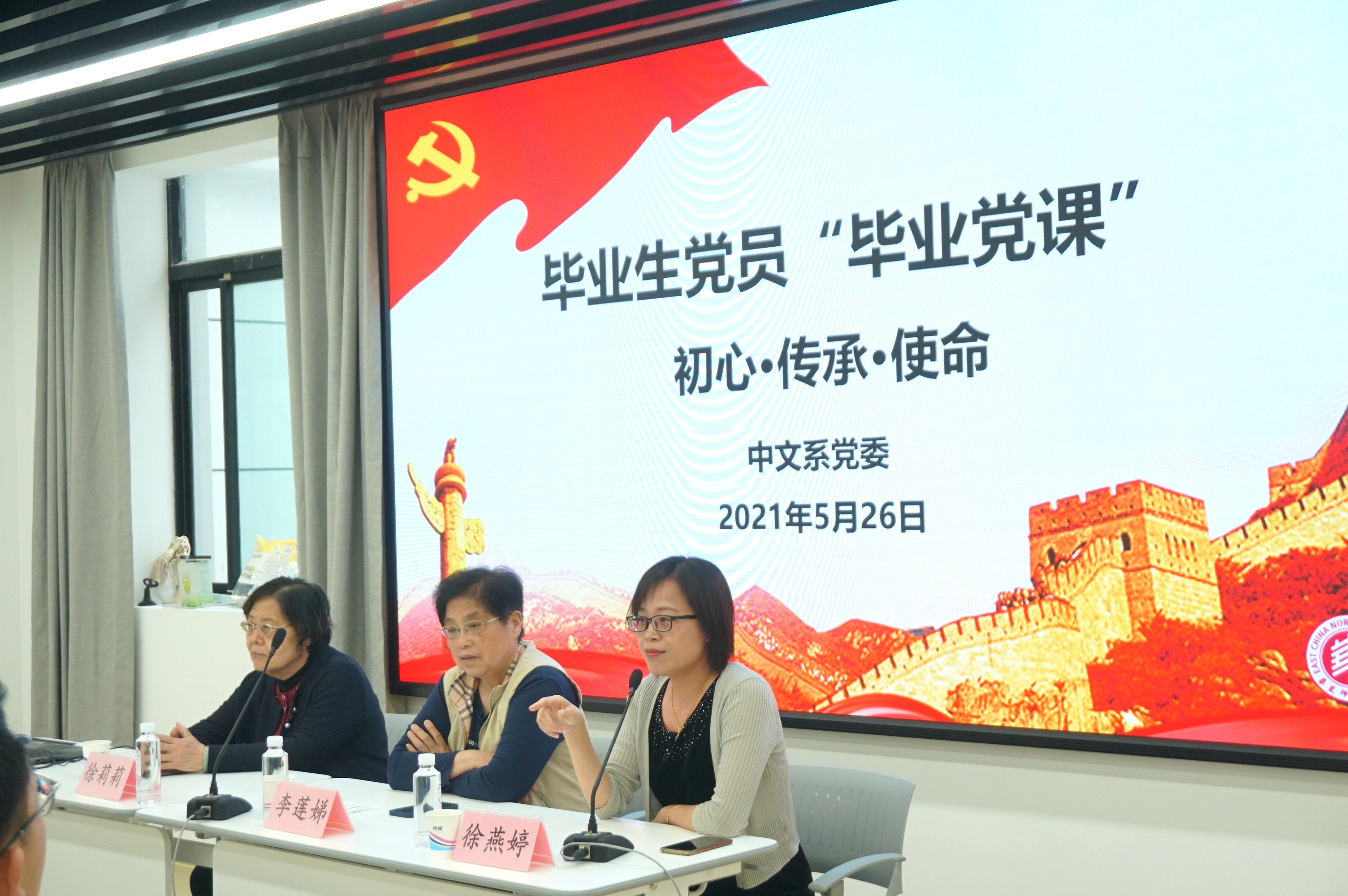 首先,徐燕婷老师对李莲娣、徐莉莉两位老师的到来表示热烈欢迎和感谢,她在开场主持中谈到,自己毕业于华东师大禁漫 ,也一直为中文人的身份感到骄傲;同时她也希望即将毕业的党员们,无论身在何处,樱桃河畔中文人的因子能始终存留于身。