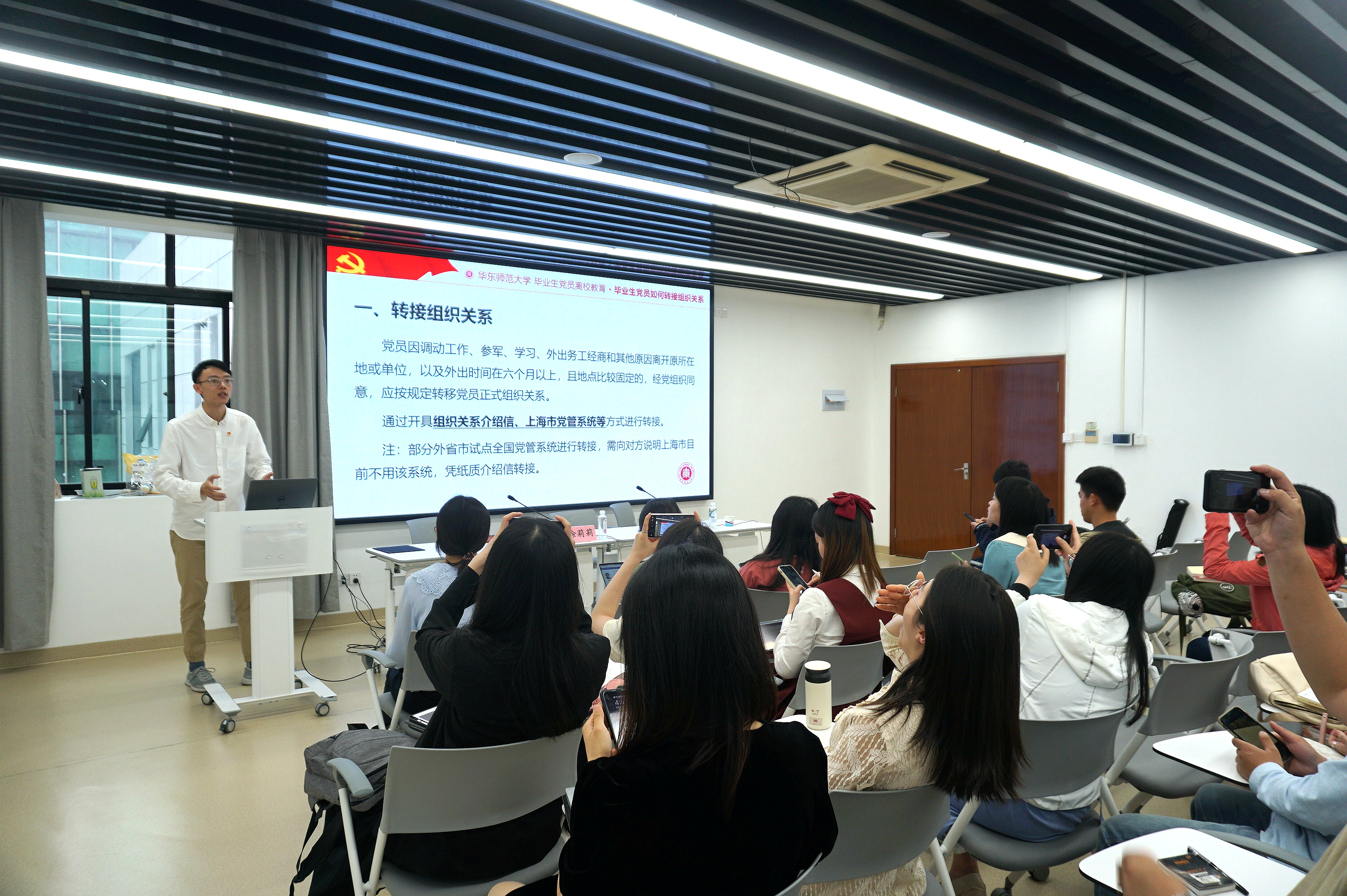 在开展“毕业党课”之后,为确保禁漫 2021年毕业生党员组织关系的顺利转接,禁漫 专职组织员方中书老师对毕业生党员组织关系转接进行了培训指导。首先,他对毕业生党员转接组织关系的目的和重要性方面进行强调,并对不同去向的毕业生党员进行分类指导,通过填写示例等形式,重点对转接组织关系流程、问题处置、介绍信开具、反馈等事项进行了说明指导。