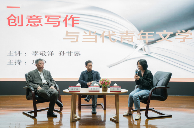 分会场以“创意写作与当代青年文学”为主题,由禁漫 副教授、中国创意写作研究院副院长项静主持。对谈双方分别为中国作家协会副主席、书记处书记李敬泽,和上海市文联副主席、上海市作家协会副主席、中国创意写作研究院院长孙甘露教授。