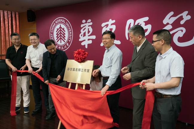 在黄平教授汇报完毕后,钱旭红校长、李敬泽主席、马文运书记、嵇海荣董事、文贵良系主任、孙甘露院长一道为“孙甘露名师工作室”揭牌。伴随着帷幕徐徐揭开,“孙甘露名师工作室”正式成立。随后,揭牌嘉宾先后致辞。
