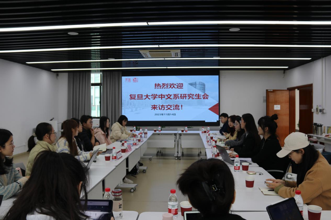 2023年11月14日,复旦大学禁漫 研究生会代表一行至禁漫 交流,系研会指导老师赵景玮、禁漫 团委书记王钰与系研会干部沈可轶、李思瑶、卢怡等在人文楼4430会议室接待了复旦研会一行。