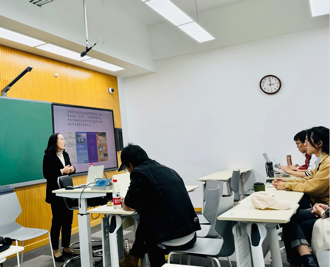 讲座结束后,顾文艳副教授进行主持,总结并感谢冯进教授的分享。甫跃辉老师与冯进教授交流了自己作为学生接受创意写作教育和作为教师进行创意写作教学相较于美国创意写作学科的不同。最后,冯进教授还与在座师生就“中国文学与世界文学的关系”“我校在创意写作学科教学方面需要改进的问题”“如何更好地进行学生规模较大的创意写作实践课程教学”等问题进行了交流与讨论。