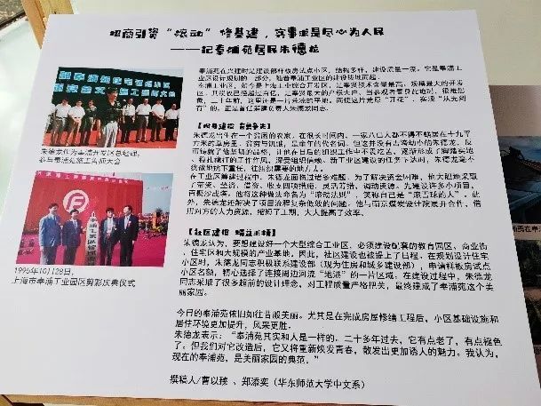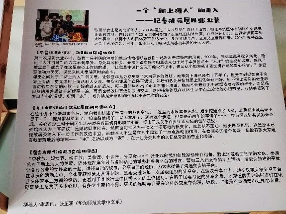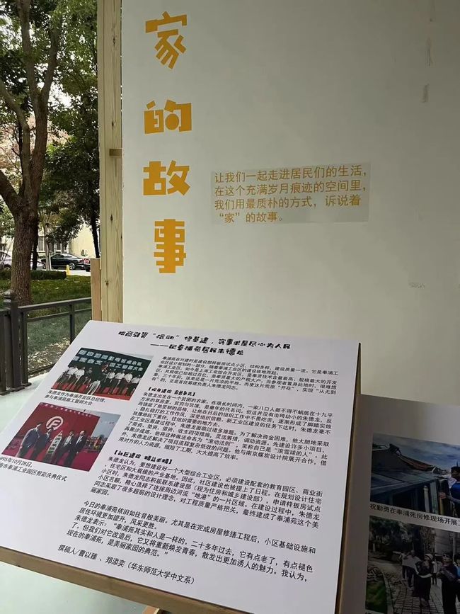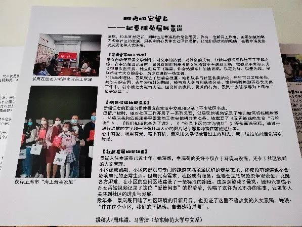 “我们的同学以“家”为主题,选择了对朱德龙、祝勤勇、景岚、张亚菲、刘丽芹五位居民进行采访,渴望了解不同职业的居民眼中不同的奉浦苑,从更个体,更真实的角度去诠释奉浦苑家的故事。”
