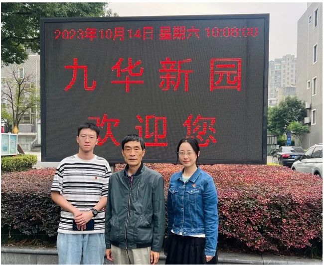 (图为曹以臻、郑添奕同学与采访对象朱德龙的合影)