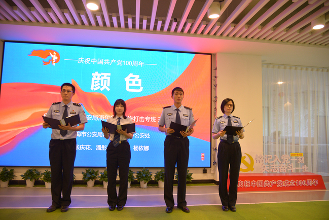 一线民警们在辛勤工作之余,还自发地设立文学创作俱乐部、文学社团等机构,传播诗词文化,投身诗歌创作,从中汲取精神力量,创造诗意生活,用文学的力量为党的百年华诞献礼。活动现场除了朗诵知名诗词外,我校师生与公安民警们还带来了各自原创或改编的作品,现场交流、朗读。原创诗歌《颜色》《那一抹中国红》《翰墨大夏,诗画中国》等或致敬过去,献礼当下,遥寄未来。由华东师大禁漫 学子与上海市公安局浦东分局、上海市公安局文化保卫分局、上海公安学院的民警们共同诵读,从不同侧面表现了中国共产党成立100年来,带领中华民族实现伟大复兴梦想的壮阔征程,讴歌共产党员不忘初心、砥砺前行的顽强精神。改编诗歌《祖国,请听一听我的告白》以饱含深情的告白,表达人民群众的家国情怀与对未来的美好憧憬,反映当代青年感悟先辈初心、为实现伟大“中国梦”而不懈奋斗的理想与决心。