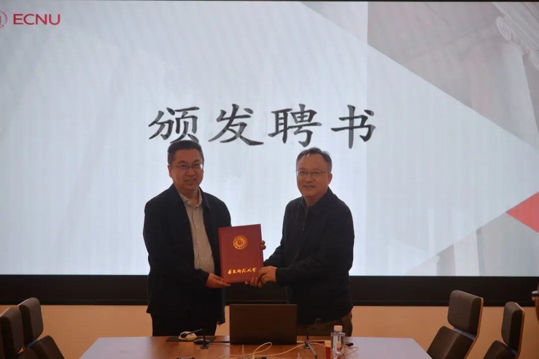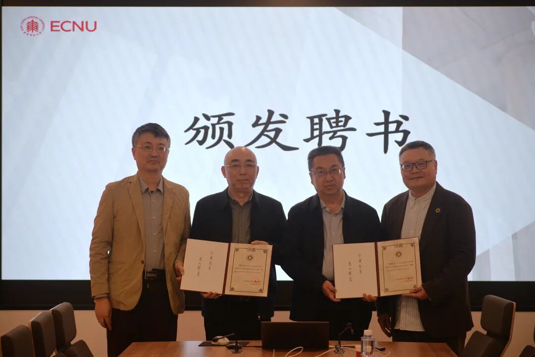 系主任罗岗教授、系党委书记徐默凡教授为李岩先生、阚宁辉先生颁发禁漫 古籍整理与出版发展咨询委员会主任委员聘书。