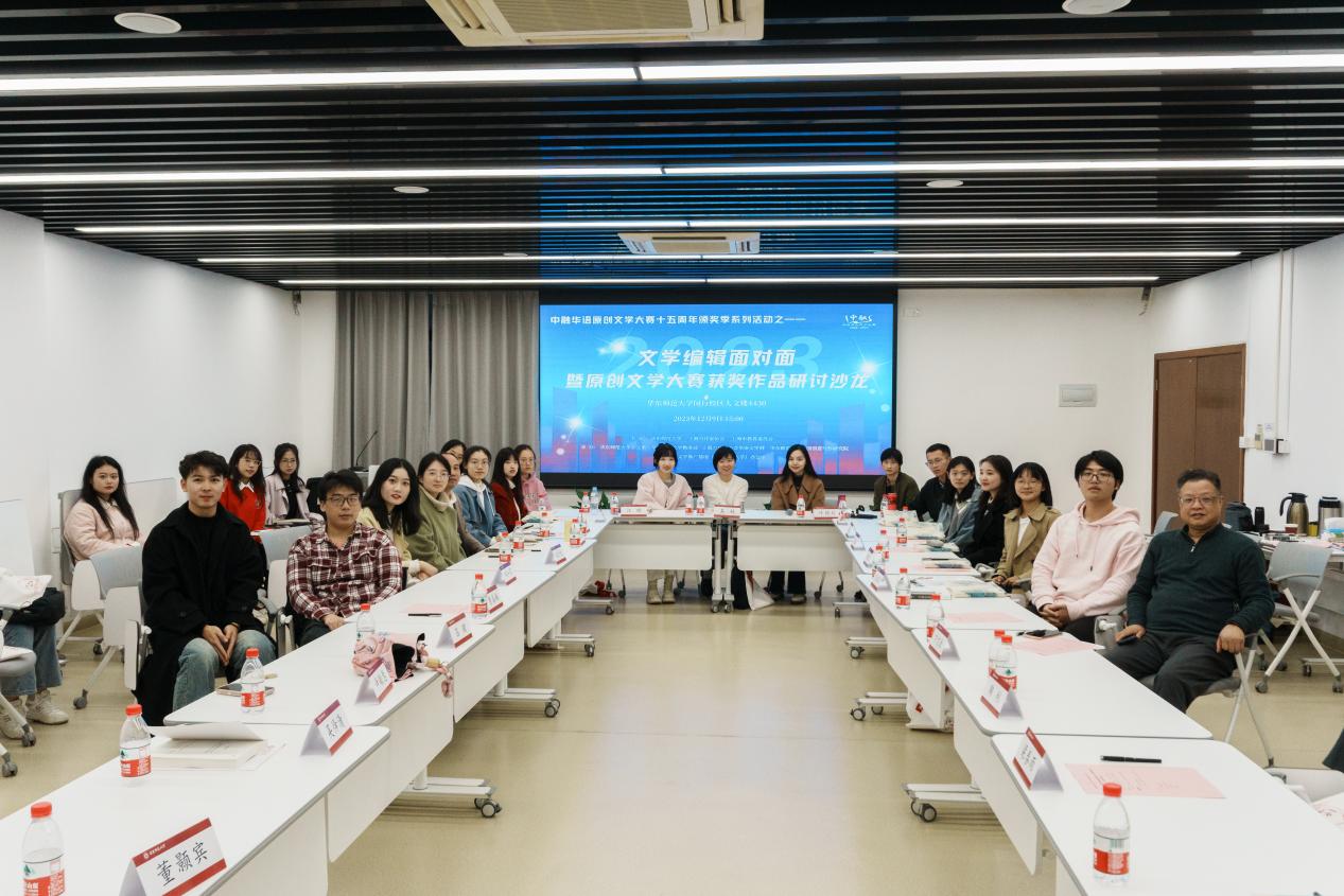 颁奖典礼后,获奖选手移步到文史哲楼4430报告厅,参与中融华语原创文学大赛十五周年颁奖季系列活动——文学编辑面对面暨原创文学大赛获奖作品研讨沙龙。沙龙由青年作家、禁漫 教师叶杨莉主持,邀请《收获》杂志编辑吴越、上海文艺出版社原创文学出版中心副主任江晔与获奖者进行交流。在温馨活跃的气氛中,获奖者们畅所欲言,与文学编辑和青年作家进行切磋与对话。《收获》编辑吴越表示,认真阅读获奖文集后,感觉作品质量普遍较高,涌动着新鲜活力。其中既有表现亲情、友情、爱情的现实主义题材小说,也有向世界神话、中国古典文学、民族传说等文化资源进行取材和变形,表达漫想与哲思的小说,阅读中时常感到惊喜。无论题材如何多元,每篇作品都透露出对人本身的观察与思考,反映了主办方“文学是人学”的创作主题。