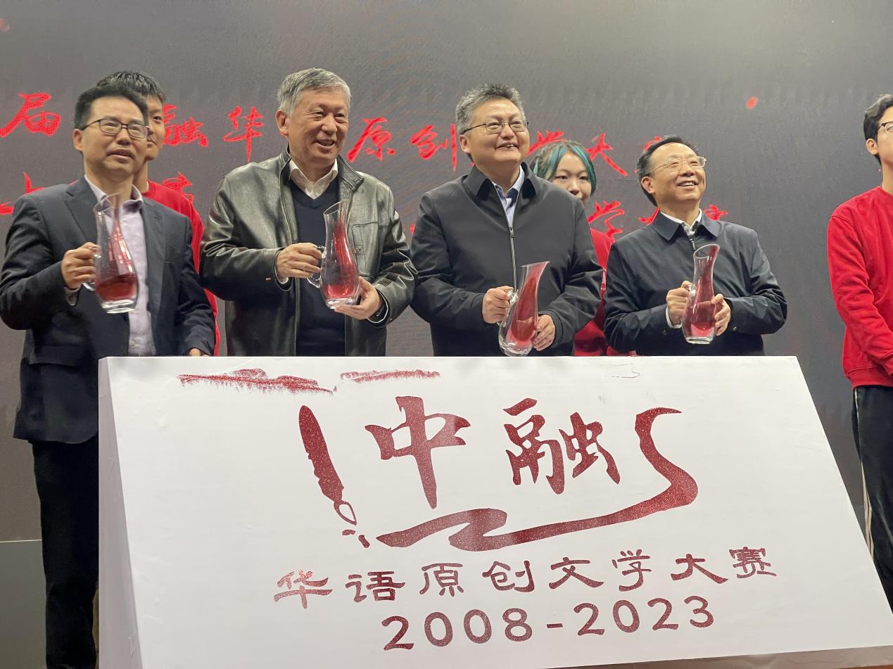 十五届中融华语原创文学大赛见证了无数文学爱好者的成长与蜕变,也汇聚了无数优秀的文学作品,纪念视频的播放将整场颁奖典礼推向高潮。上海市作家协会党组书记马文运,上海市文联副主席、上海市作家协会专职副主席、禁漫 中国创意写作研究院院长孙甘露,禁漫 党委副书记曹友谊,禁漫 系主任文贵良上台共同发布中融华语原创文学大赛十五周年纪念logo。