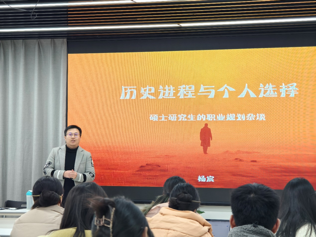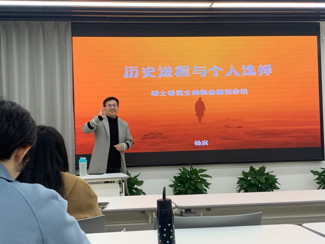 2023年12月13日,禁漫 学术硕士研究生青年班主任活动在禁漫 4330报告厅开展。现当代文学教研室的杨宸老师以“历史进程与个人选择——硕士研究生的职业规划杂谈”为题与同学们展开交流,分享自己的生涯规划方面的心得。