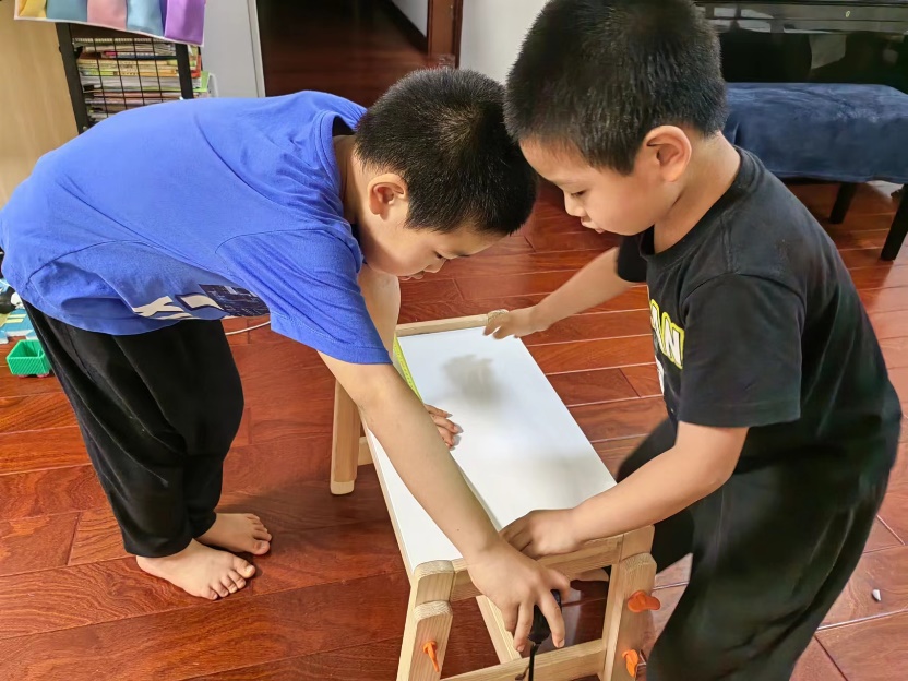 孩子参与到家务劳动中,与父母一起做菜、打扫卫生,建设自己的小家庭。