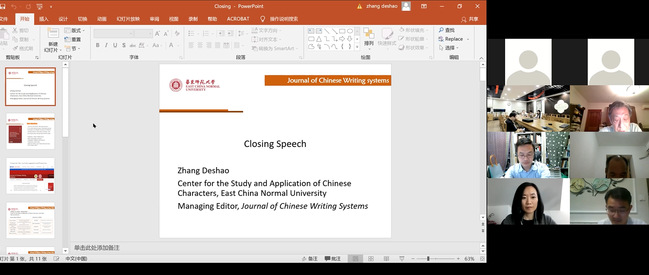 在闭幕式上,Journal of Chinese Writing Systems(《中国文字》)执行主编张德劭副教授对各位学者的发言进行总结,并对与会学者的精彩发言和热情参与表示感谢。本次论坛涉及埃及文、楔形文字、古英文、古汉字中的甲骨文、金文、简帛文字、隶书、古壮字等多种语言和文字,涉及语言学、文字学、计算机等多个学科。讨论范围从深度和广度上来说,兼而有之。汉古文字是中国的传统学科,拥有悠久的历史。中国的文字种类多样,是世界文字的重要组成部分。中国有学者研究国外的文字,国外学者研究中国的文字。中外文字学家就埃及文字,楔形文字等不同议题展开了热烈的讨论,使不同文字之间建立了联系,是非常有意义的尝试。张德劭在总结中还表示,期待今后创造更多的机会在不同文字、文明之间展开深入交流与合作。最后,张德劭副教授还介绍了由禁漫 中国文字研究与应用中心主办的国际期刊Journal of Chinese Writing Systems(《中国文字》)的基本情况,表示该期刊将努力成为构建中西方文字之间的桥梁,呈现出丰富多样的世界文字。