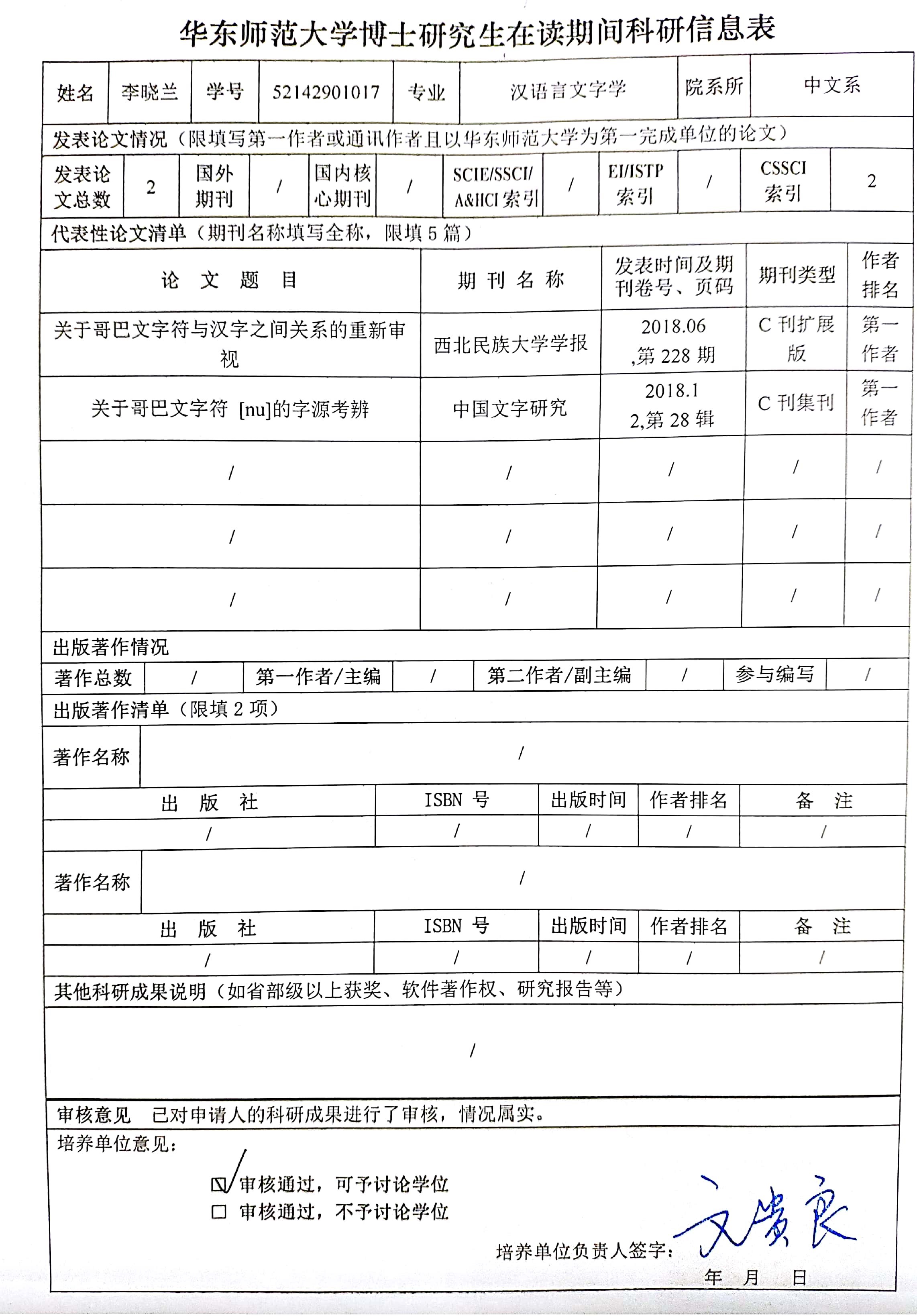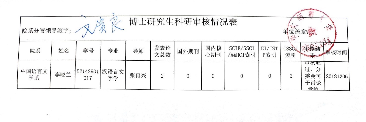根据禁漫 研究生院关于博士研究生科研成果发表要求的相关规定,中国语言文学系对2018年春季拟毕业博士研究生的科研情况进行了审核,现将复核结果予以公示。公示期2018年12月11日至12月15日(五个工作日),在此期间如有异议,请与禁漫 教务办公室联系。