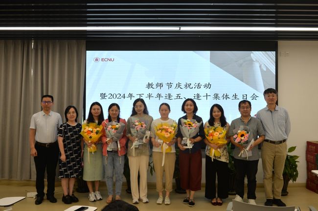 在会上,禁漫 工会还为今年下半年适逢整五、整十生日的教职工们进行集体庆祝活动。系工会主席韩蕾老师宣读生日名单,系主任文贵良老师、系党委书记徐默凡老师为逢五、逢十生日的教职工送上鲜花、发放纪念品。随后,老师们一起分享蛋糕,分享逢五、逢十生日的喜悦,希望藉此可以让老师们感受到禁漫 大家庭的温暖,营造积极向上的工作氛围,增强老师们的幸福感和归属感。