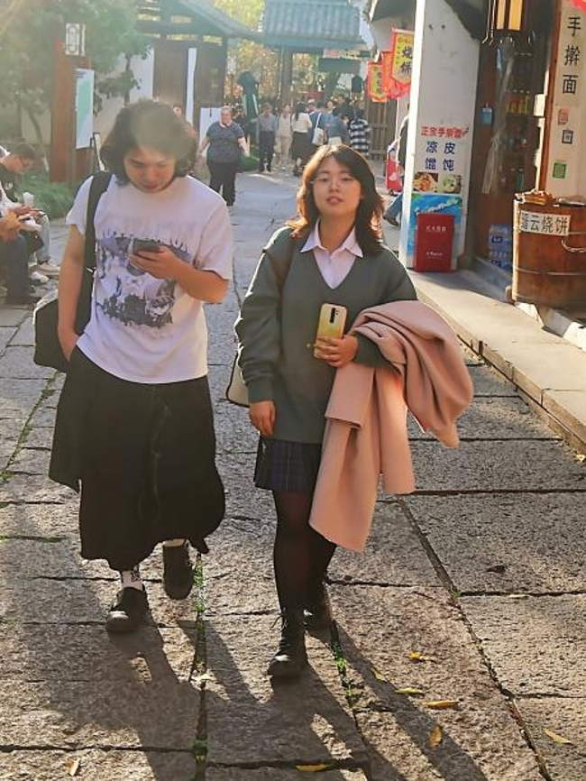 及至登岸,我们来到湿地中一处青砖黛瓦的建筑群中,此处游人如织、商铺栉比,烟火气渐旺。石板路的街巷上则摆满了小摊,随处可见檐下挂着火红的灯笼,写有店名的旗子在风中招摇。有的摊点上陈列着黄澄澄的柿子,散发出丝丝甜香;有的架子上挂满了风干的熏肉、板鸭,已有准备过年的富足景象;有的箩筐里则晒满小鱼干,想必是水乡特色……此地风土人文实在令人倍感亲切,可借此一窥农业社会时期鱼米之乡富饶而忙碌的生活景象。