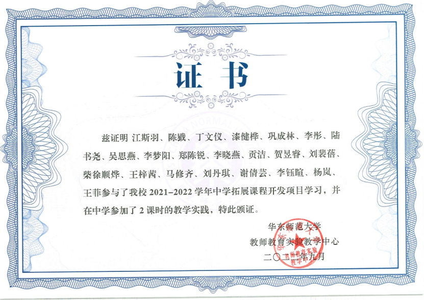 (参与前两轮课程教学的同学所获得的证书)