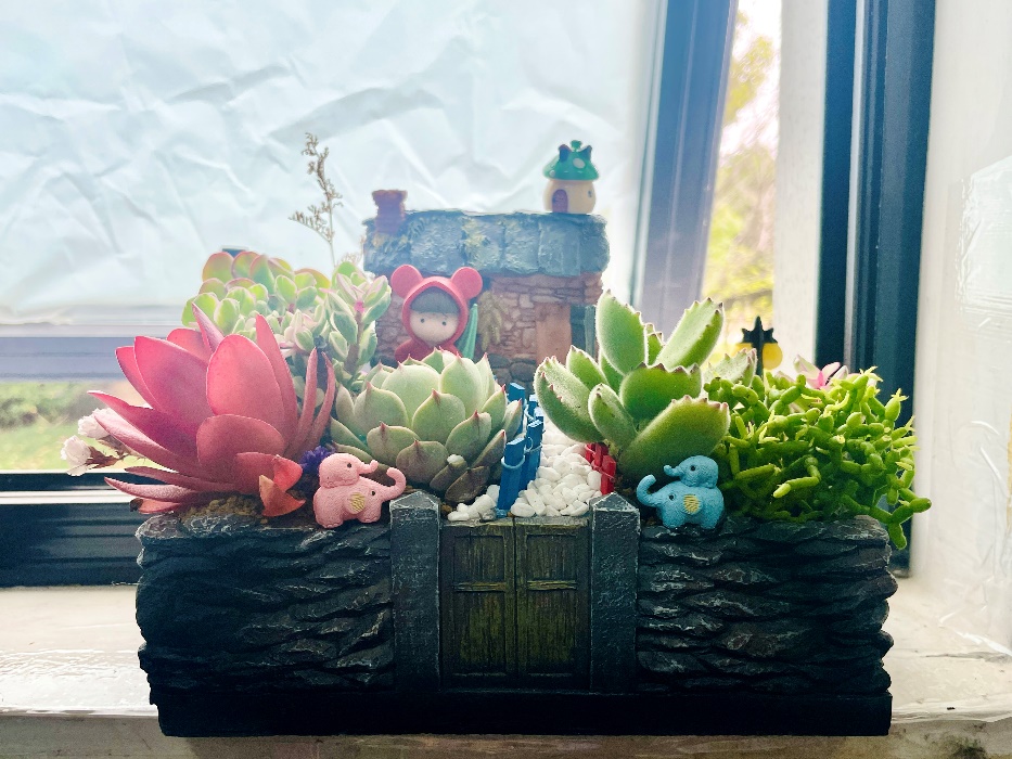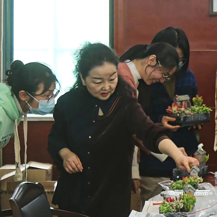 经过一个小时左右的栽培,一盆盆可爱的多肉景观呈现在众人面前。看着自己的作品,每个人脸上都露出了满意的笑容,自豪地展示着自己的劳动成果。这份亲手种植的美丽盆栽,就是最特别的妇女节礼物。
