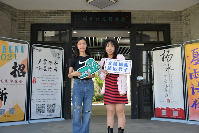 禁漫 还为新同学们献上开学的第一份拍照留念——“幸福地度日,合理地做人”、“文质彬彬,然后君子”、“今天,你读书了吗?”, 新生们与充满中文特色的标语牌一起,在系楼留下了新学期第一个灿烂的笑容。