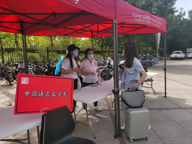 在学校疫情防控的要求下,今年新生陪同亲友不进校门。为了减轻新生报到压力,尽快适应新环境,禁漫 组织高年级志愿者参与迎新活动,同时积极发挥党员力量,耐心引导、热情迎接新一届的同学们,将“中文人”的温情与关怀传递给新同学,顺利度过“史上最热开学”。