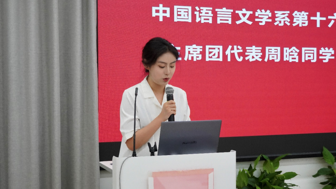 与会嘉宾有中国语言文学系党委副书记徐燕婷教授、中国语言文学系团委书记王钰老师、中国语言文学系研究生会指导老师赵景玮老师、中国语言文学系研究生辅导员李思瑶老师、禁漫 研究生会主席团代表郭昕圆、河口海岸科学研究院研究生会主席团代表李雪、社会发展学院研究生会主席团代表商海铃、数学科学学院研究生会主席团代表毛琦、化学与分子工程学院研究生会主席团代表谭源钰。大会由中国语言文学系研究生会执行主席宋睿琳主持。