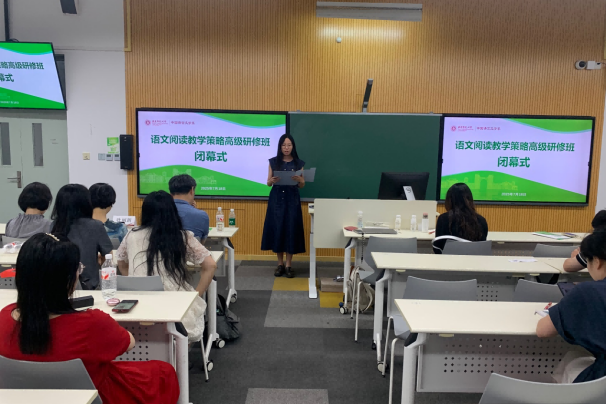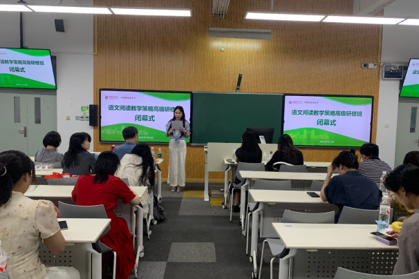 结业仪式由研修班班主任张潇萌老师主持,徐默凡教授为本次研修作总结讲话。学员代表、来自禁漫 江阴实验学校的顾呈熙老师和华东师大二附中附属初中的戴嘉禾老师表达了对五天学习过程的留恋、对教学与组织质量的肯定。本次语文阅读教学策略高级研修班拓展了一线教师对语文教育的认识,期待参培老师们继续深耕不辍,共同创造美好的语文课堂。