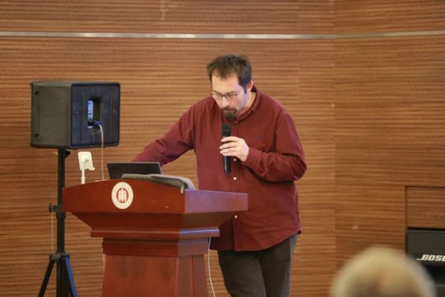 6日下午第二场议题“人类世中的叙事”由禁漫 卢逸凡(Ivan Ruviditch)副研究员主持。Neohelicon期刊主编、深圳大学外国语学院特聘教授Peter Hajdu作了《气候变化政治学与社会崩溃叙事》的主题报告,指出气候变化导致了社会崩溃叙事,强调这一叙事带来的政治危险性,即可能导向对中心化的强权与控制的支持,Hajdu教授以奥克塔维娅.E.巴特勒的小说为例,否认了中心化强权的必要性。