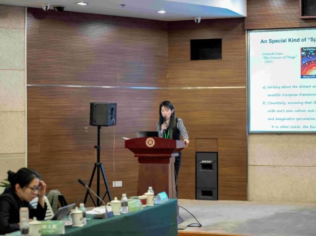 上海交通大学外国语学院博士生黄歆以《阳光朋克美学:西方的“桃花源记”》为题,介绍了阳光朋克与其它以悲观为主的朋克美学之区别,指出阳光朋克对生态和谐的强调与中国古典生态美学观相一致,使得阳光朋克成为西方文化中的“桃花源”。