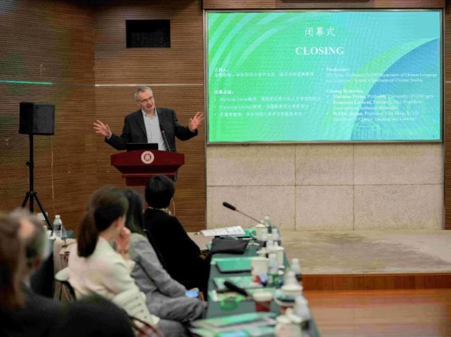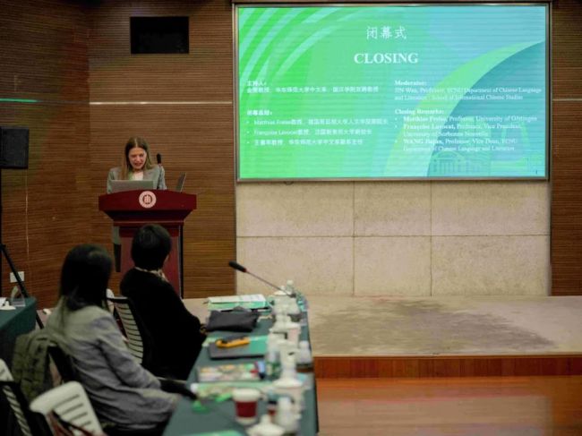 7日下午,闭幕式由金雯教授主持。德国哥廷根大学人文学院副院长Matthias Freise教授、法国新索邦大学副校长François Lavocat教授、禁漫 副系主任王嘉军教授先后做了闭幕总结发言,高度评价了会议内容的丰富深刻,向与会学者表达了感谢,同时期待校际之间再次展开跨领域的深度学术交流与合作。