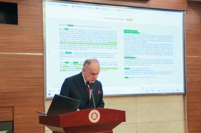 法国社会科学高等学院Otto Pfersmann教授的报告题目为《为什么法律应该去叙事化?反对法律与文学的某些概念》,他反对了目前普遍流行的将法律与虚构叙事结合的做法,展示它既未能把握法律的本质,也未能理解虚构文学的吸引力,同时可能在法律背景下产生一种超法律规范性的悖论幻象。Pfersmann教授试图重建这一框架,将叙事中的时间与规范联系起来,而非分析规范如何在可能的行动集合上架构时间。