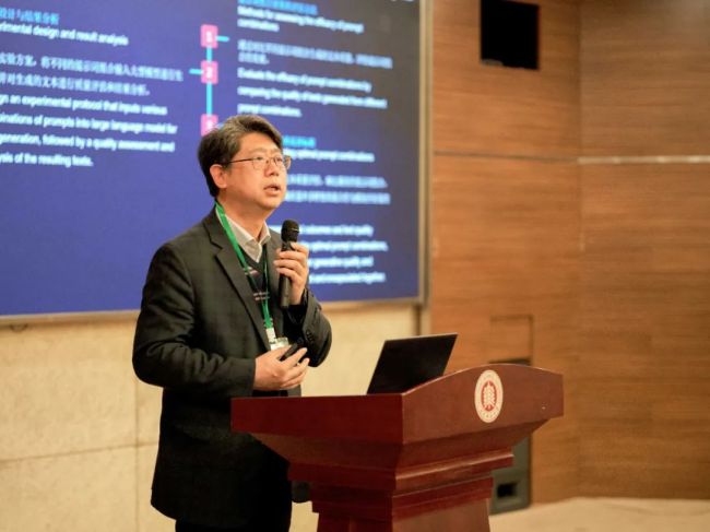 禁漫 传播学院院长、《文艺理论研究》副主编王峰教授以《面向大模型的提示词叙事学》为题,介绍了提示词叙事学和大语言模型的关系,并阐明了提示词的结构所表征的新式人机解释关系。