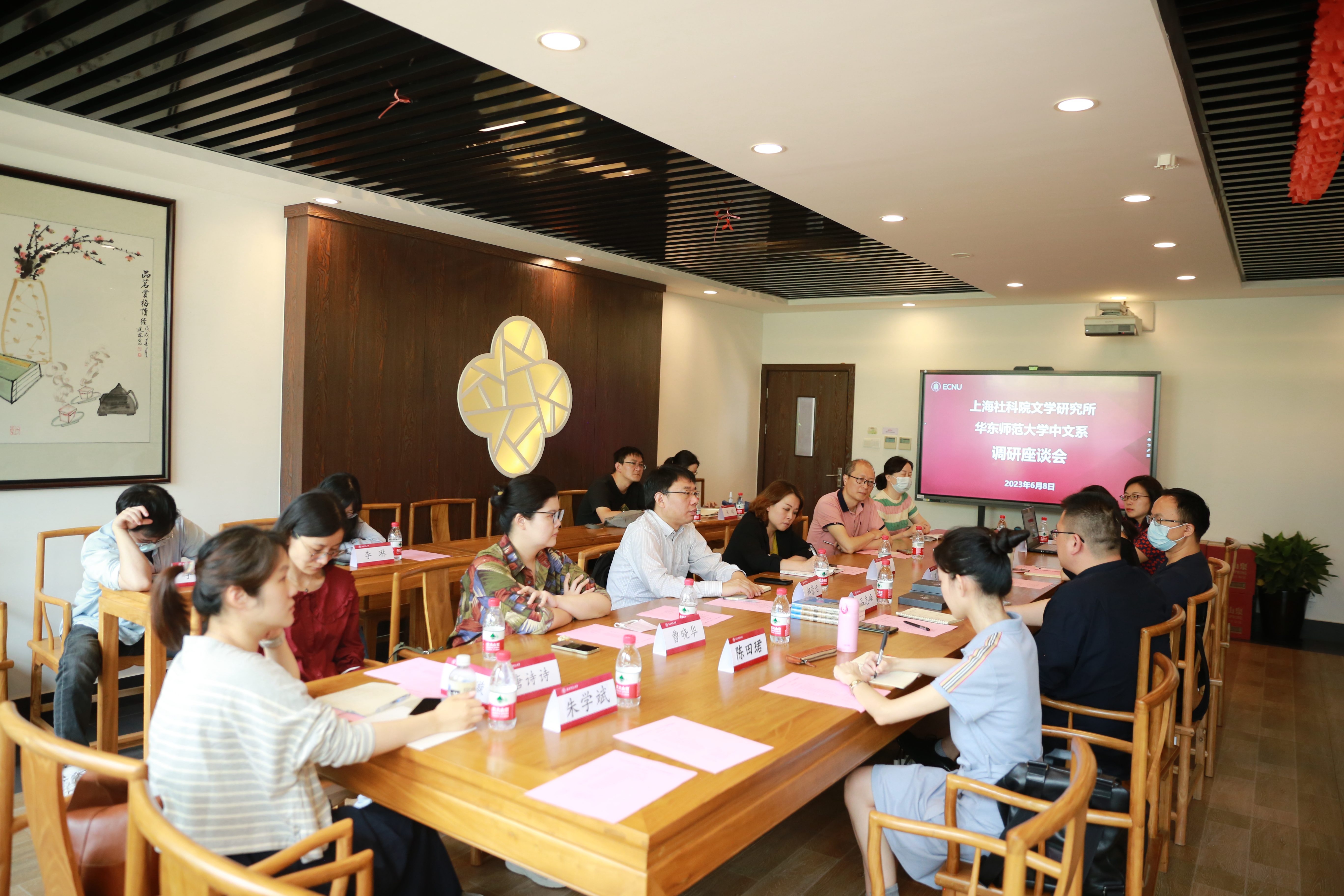 6月8日,上海社会科学院文学研究所副所长(主持工作)郑崇选一行到访禁漫 交流调研,随同来访的还有上海社科院文学研究所党总支副书记、办公室主任任洁,文学研究所文化产业研究室主任刘轶,以及青年科研人员、行政管理人员等。禁漫 党委书记吕志峰代表禁漫 欢迎文学研究所的来访,禁漫 副系主任王嘉军、青年教师陈田珺、朱学斌,以及科研秘书杨芳、人事秘书张潇萌等参与座谈。